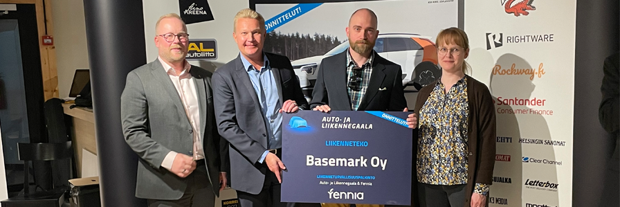 Basemark, som belönades med trafiksäkerhetspriset för trafikåtgärder och utvecklar programvarulösningar för smarta bilar och autonoma transporter, har överlämnat sitt pris till HUS immobiliseringsvårdare och avdelningens läkare i Träskända 24.5.2023. Fennia delade ursprungligen ut priset i rollen som huvudpartner på Auto- ja liikennegaala i december förra året.