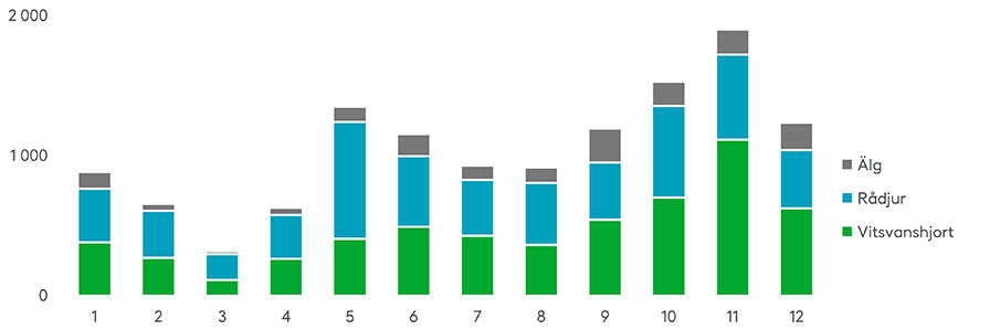 Viltolyckor i hela landet per månad 2023