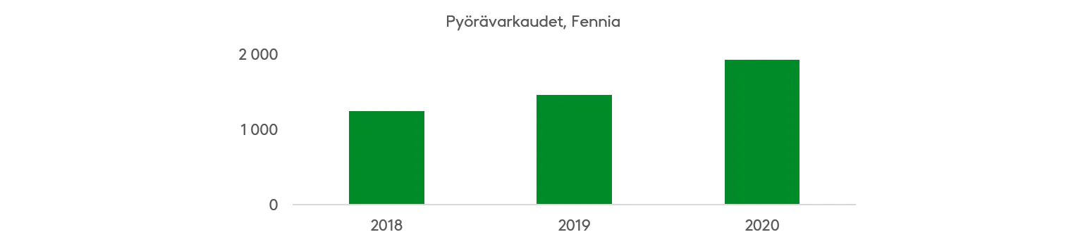 Polkupyöräilyn ohella myös pyörävarkaudet ovat lisääntyneet viime vuosina merkittävästi. Fennian asiakkailta varastettiin viime vuonna jopa 24 prosenttia edellisvuotta enemmän. Keskimäärin Fennia korvasi polkupyörävarkauksista vajaa 500 euroa per pyörävarkaus.